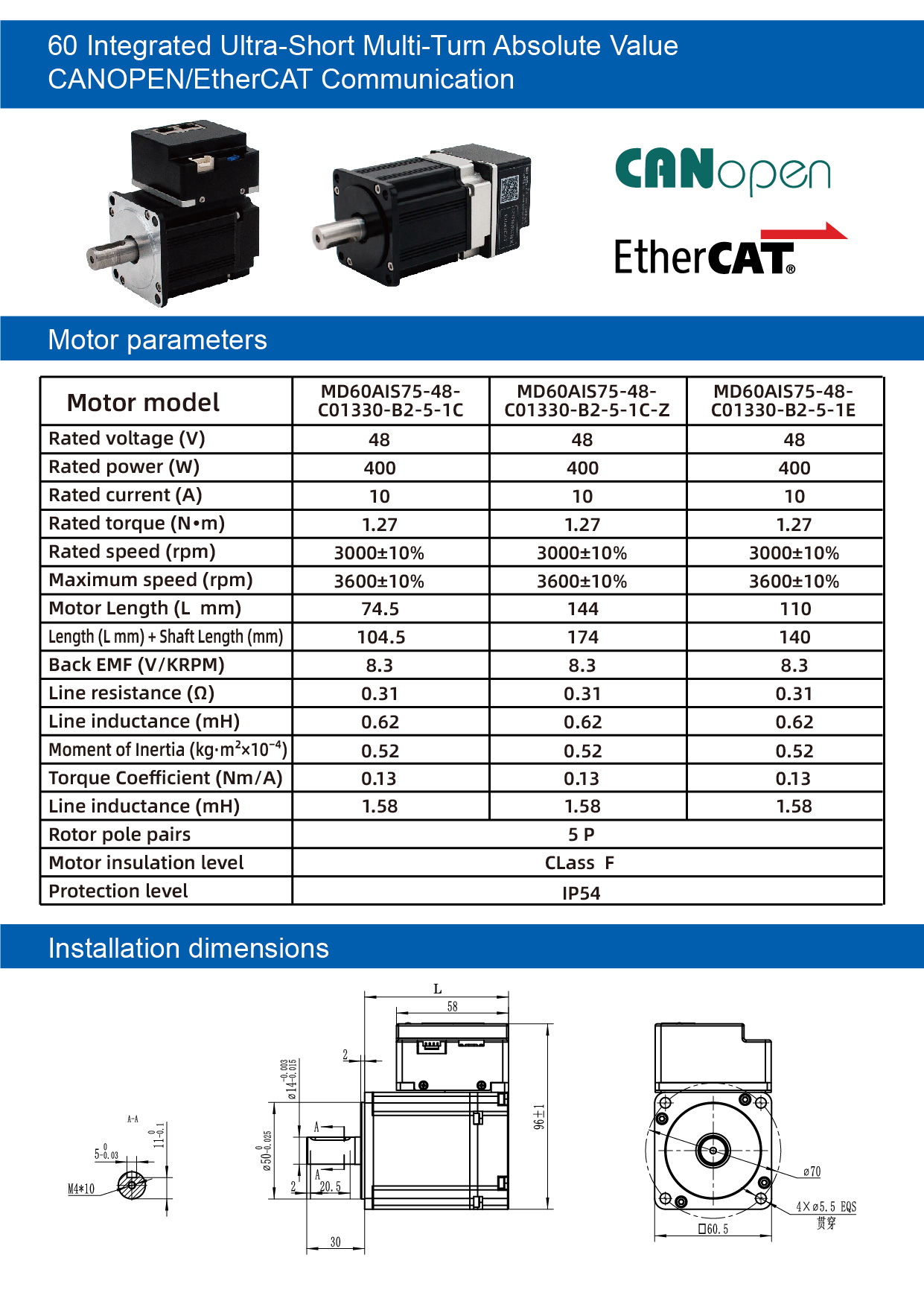 | MD60AIS75-48-C01330-B2-5-1C-Z (CAN with Rear – mounted) | 48 | 10 | 1.27 | مع الفرامل |