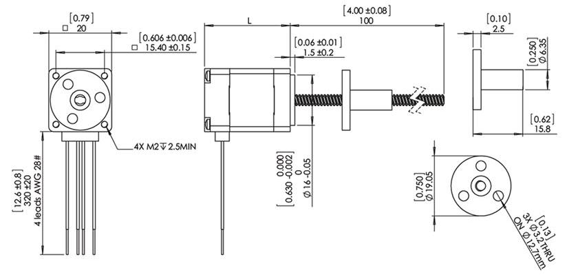 20 Ball Screw Stepper motor Dimension
