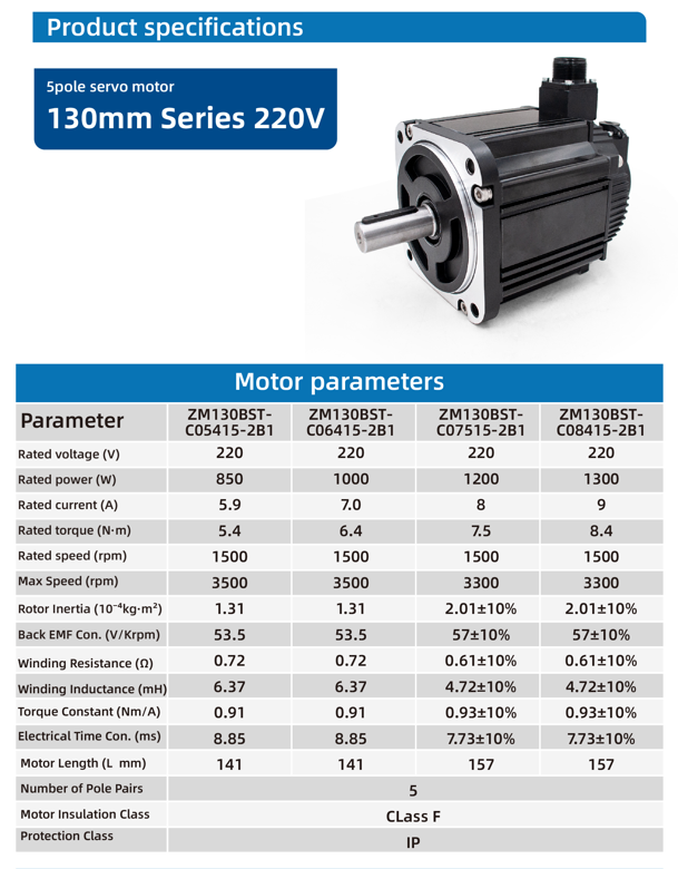 130B-Serie 220 V 17-Bit-23-Bit-Absolutwert-Fünfpaar-Pol-Servomotor