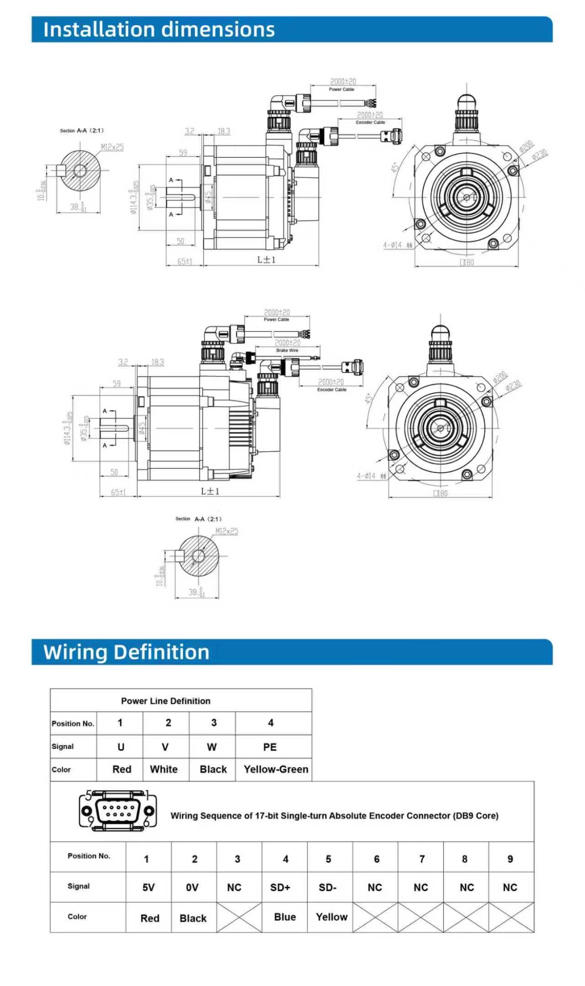 180B-Serie 380-V-17-Bit-23-Bit-Absolutwert-Fünfpaar-Pol-Servomotor