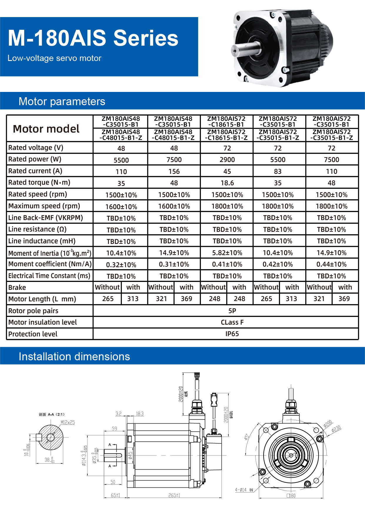 M-180AIS Series (Low-voltage Servo Motors) Key Specs