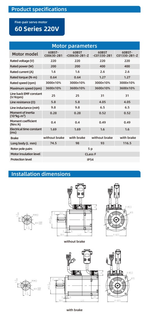 6017-Bit-23-Bit-Absolutwert-Fünfpaar-Pol-Servomotor der B-Serie