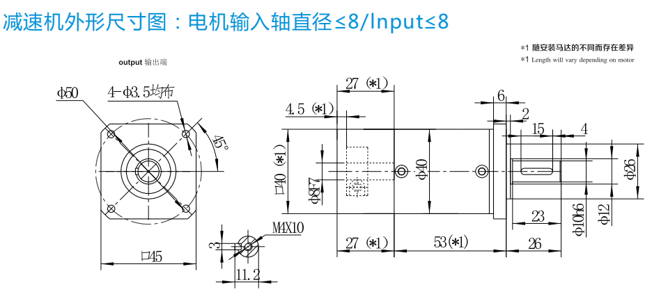 PF 040 L2 -25-P2-S2 gearbox,the output shaft diameter is 8mm.It used for 50W-100W ac servo motor,input diameter is 8mm.,,