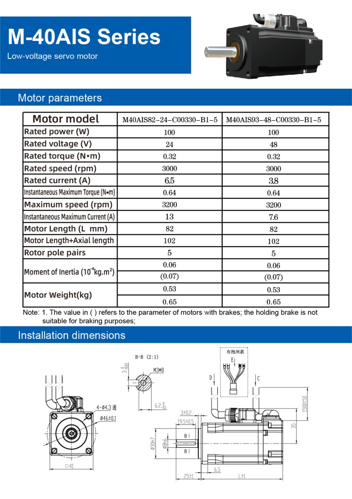 M-40AIS Series Low-voltage Servo Motor Key Specs