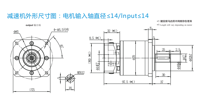 PF 070 L2 -25-P2-S2 gearbox,the output shaft diameter is 14mm.It used for 200W-400W-600W 60mm ac servo motor,input diameter is 14mm.,,