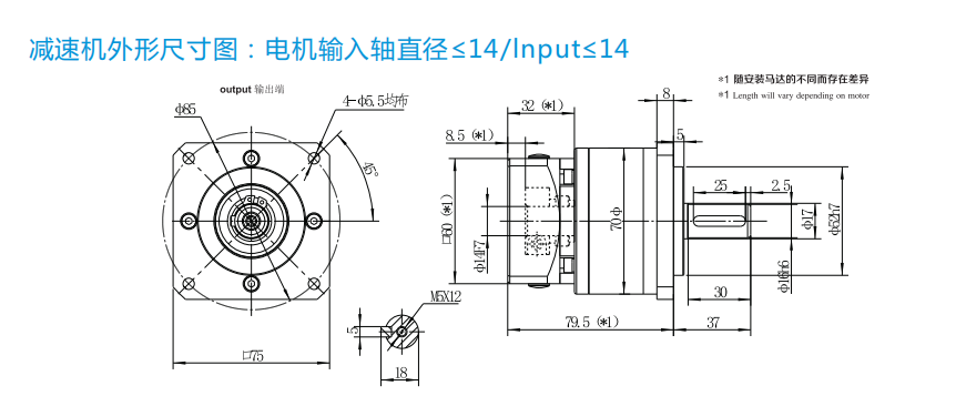 PF 070 L1 -5-P2-S2 gearbox,the output shaft diameter is 14mm.It used for 200W-400W-600W 60mm ac servo motor,input diameter is 14mm.,,
