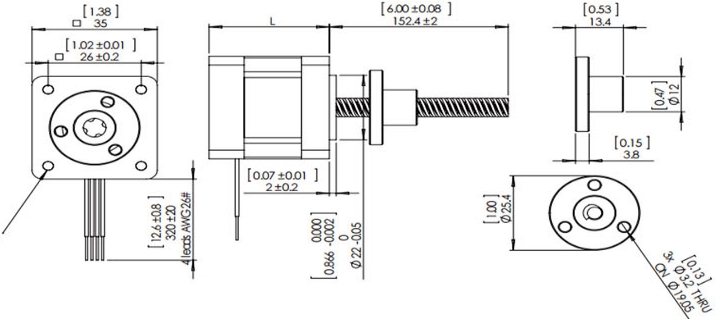 Screw Nut Diameter 6.35mm External Drive Motor
