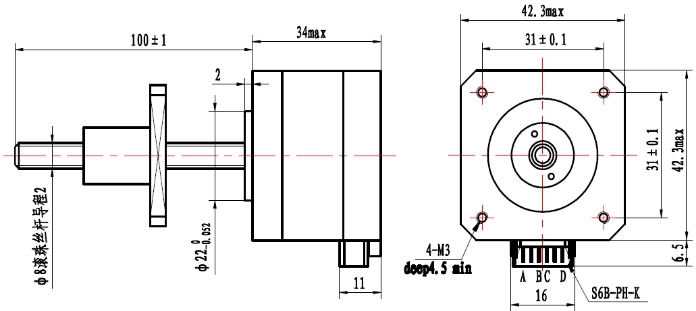 1.8°Size 42mm(17H) Ball Screw Stepping Motor Linear Actuators