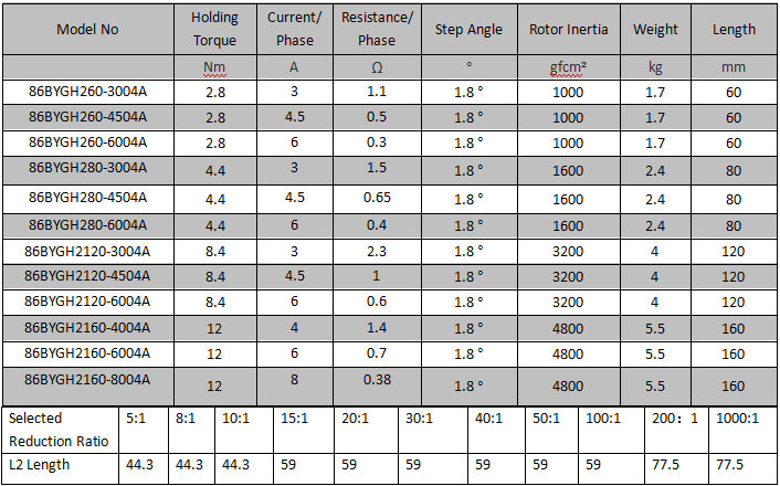 1.8°Size 86mm(34H) 2 Phase Planetary Gear Stepper Motor