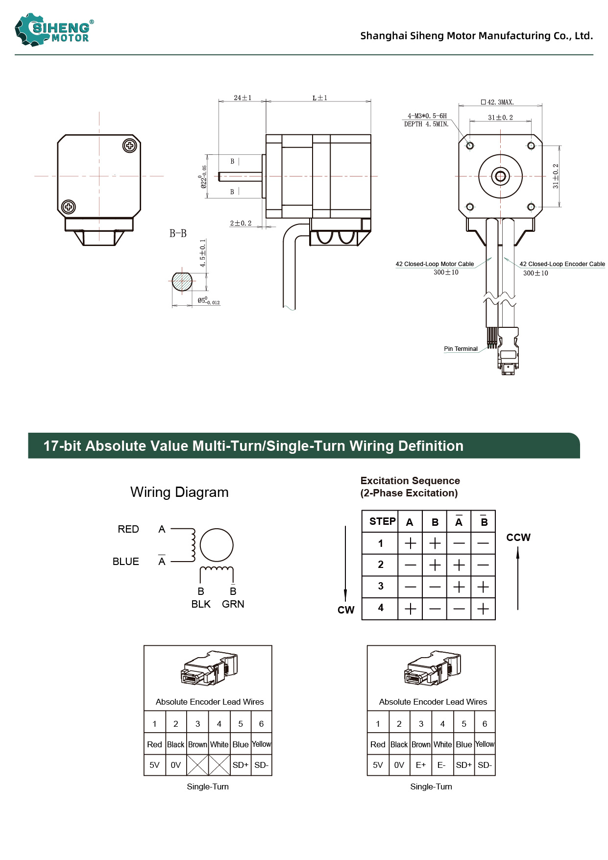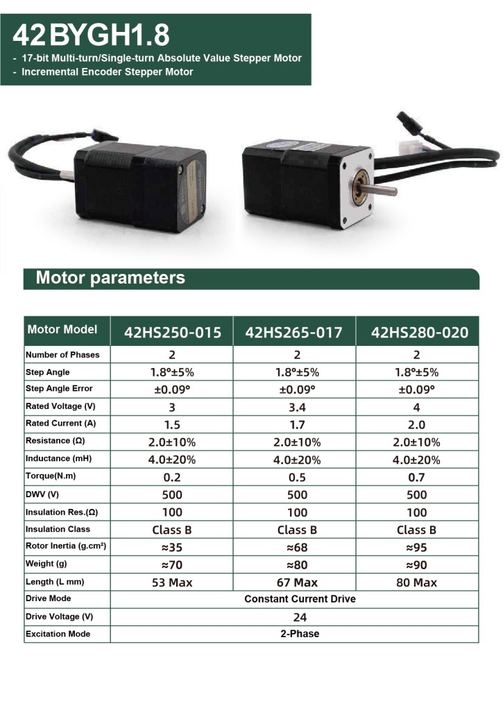 – 17-bit Multi-turn/Single-turn Absolute Value Stepper Motor