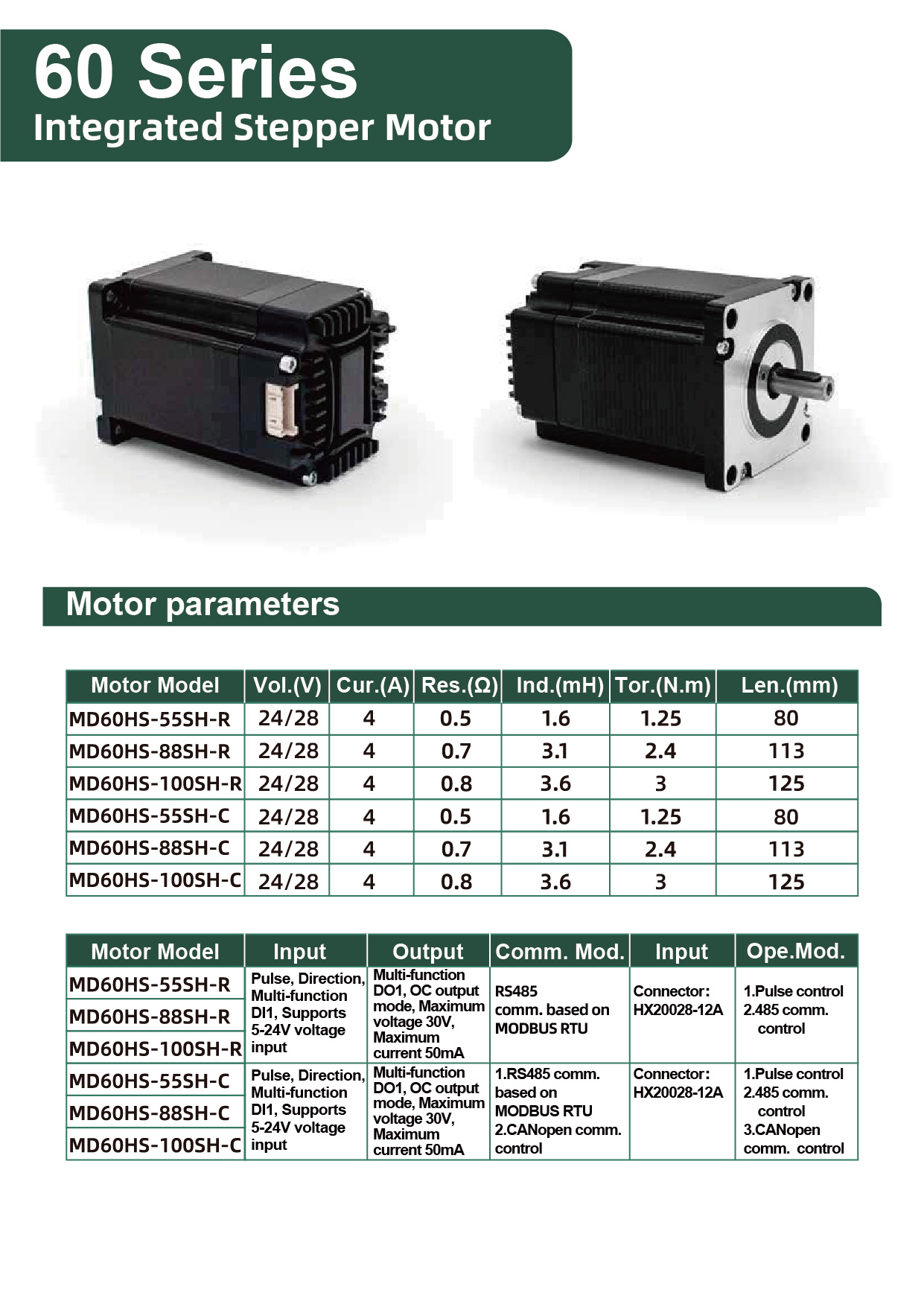 The 60 Series Integrated Stepper Motor (compact, precise, all-in-one) suits scenarios like: