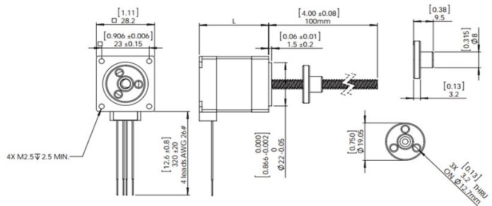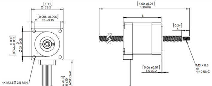 1.8°Tamanho 28mm(11H) Atuadores lineares de motor de passo híbrido