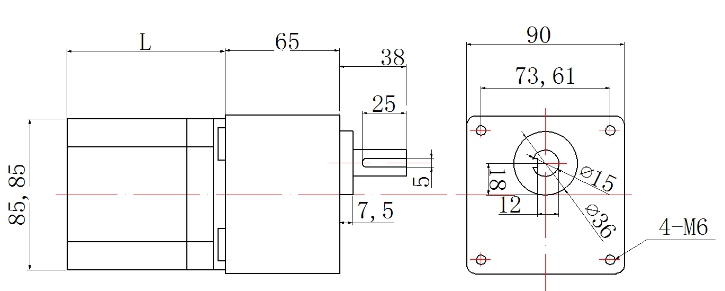1.8°Tamanho 86mm(34H) 2 Motor de passo de fase com caixa de velocidades