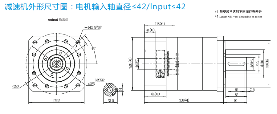 PF 215 L2 -25-P2-S2 gearbox,the output shaft diameter is 42mm.It used for ac servo motor,input diameter is 42mm.,,