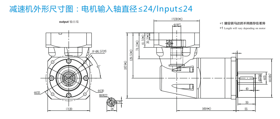 WPF 115 L2 -25-P2-S2 gearbox,the output shaft diameter is 24mm.It used for 130mm ac servo motor,input diameter is 24mm.,,